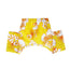 Fun swim trunk with pocket and grommet details. Elastic waistband and velcro closure. 50% cotton, 50% polyester. Yellow.