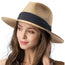 Women Wide Brim Straw Panama Roll up Hat Belt Buckle Beach Sun Hat