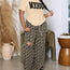 Color: khaki maze letter printing, orange striped letters printing, yellow pattern letter printing